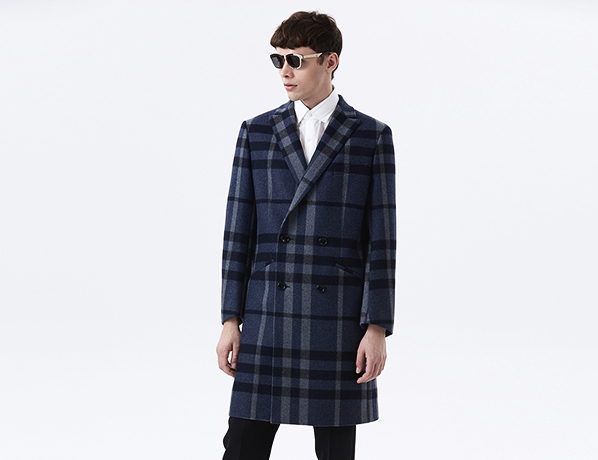 藍(lán)色時(shí)尚格紋雙排扣大衣