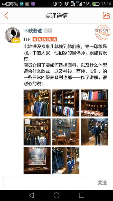 出地鐵沒費事兒就找到他們家,第一印象是照片中的大叔,他們家的量體師,很酷有沒有!店員介紹了要如何選擇西服定制面料,以及什么體型適合什么款式,以及襯衫,西裝,皮鞋,的一些日常的保養系列也都一一作了講解,很耐心的說!