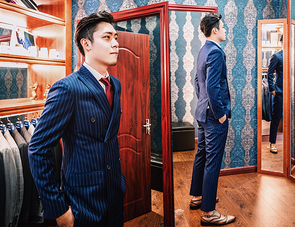 深藍色豎紋西服定制